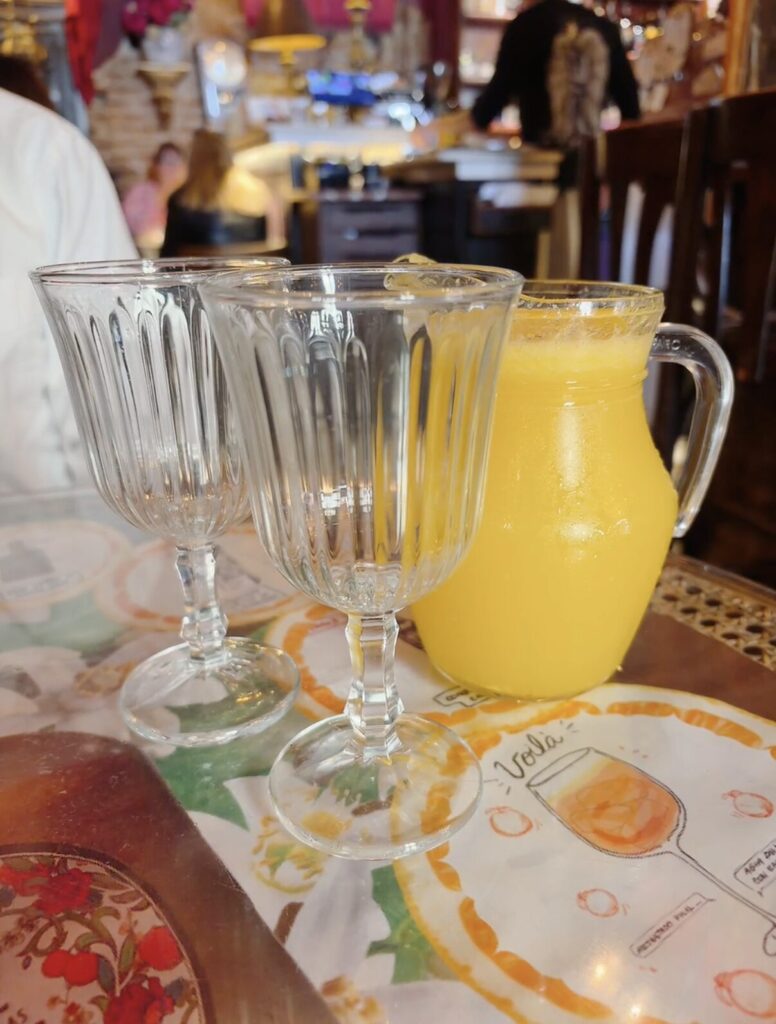 アクア デ バレンシア:バレンシア水(オレンジジュースベースにスパクリのカバやコアントロー、お店によってはジンやウォッカを混ぜる。控えめに言って『イカれた』飲み物)